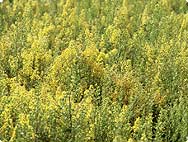 Botanical characteristics Goldenrod is a hardy plant with a cylindrical, knotty rhizome, from which a round stem grows in springtime. It attains a height of 20 to 50 cm, sometimes reaching up to 1 m. The lower part of the stem is usually non-branching, with a reddish tinge; it branches out further towards the top. The alternate leaves have a pointed elliptical shape with a dentate edge. Towards the flowering end of the plant the leaves become narrow and lanceolate with smooth edges. Numerous stalked golden yellow flowers form an elongated composite cluster at the top end of the stem. The flowers open from the bottom upwards. Once they have withered, a pappus forms in the calyx and disperses the tiny fruits on the wind. The genus Solidago is classified into more than 100 species, which crossbreed easily and form new varieties. European goldenrod is divided into two subspecies which are both polymorphous. Precise identification is not easy. It is, however, easy to differentiate European from Canadian goldenrod, which was introduced to Europe in the last century. The flowering period is from July to September. The species Solidago virgaurea L. or true goldenrod, S. serotina AITON (syn. S. gigantea WILLDENOW) or giant goldenrod and S. canadensis L. or Canadian goldenrod and their hybrids share a common monograph E. This is only partially tenable according to Prof. Schilcher, since the various species of goldenrod have different active ingredients [2,3]. True goldenrod has become a rarity in the herb market. top ^ |